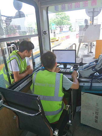 圖為工作人員對天線聯(lián)調(diào)測試 8日9日中午1點30左右,正是一天中最熱的時間,天線廠家?guī)еO(shè)備來到收費所,中心人員便放棄午休時間和早已在外廣場待命登高車駕駛員一起,協(xié)助廠家技術(shù)人員更換離地面6米余高的RSU天線盒。由于天線盒上方?jīng)]有安裝任何遮擋設(shè)備,長年日曬雨淋導(dǎo)致上方固定螺栓都出現(xiàn)生銹打滑,拆卸難度徒增,不到十分鐘,我們工作人員便濕透了全身,但大家還是咬咬牙,為盡快恢復(fù)車道正常行駛,保證車道便捷暢通而繼續(xù)埋頭苦干。在經(jīng)過近一個小時努力,終于將新的天線盒成功安裝,最后經(jīng)過聯(lián)調(diào)測試,恢復(fù)了車輛正常讀卡。 通過對新天線盒“上任”后數(shù)天觀察,發(fā)現(xiàn)該ETC車道讀卡失敗率明顯下降,車輛通過率達到了99.7%。如此一來,大大提高了車輛通行效率,距打造“智慧高速”目標又邁進了一步。
