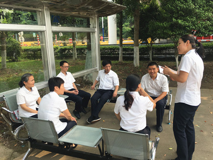 臨海南收費(fèi)所自創(chuàng)環(huán)境進(jìn)行業(yè)務(wù)學(xué)習(xí) 6月8日下午,臨海南收費(fèi)所因辦公樓改造施工,組織員工在室外露天場(chǎng)地,分析、討論5月21至31日交叉稽查中發(fā)現(xiàn)的不規(guī)范操作業(yè)務(wù),并確定整改措施,規(guī)范收費(fèi)流程。