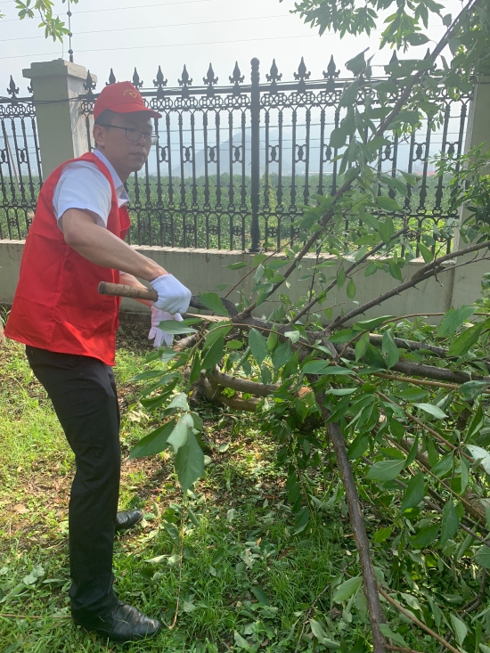 8月13日上午,該所志愿服務(wù)隊身穿統(tǒng)一紅色馬甲,積極投身到災(zāi)后恢復(fù)工作