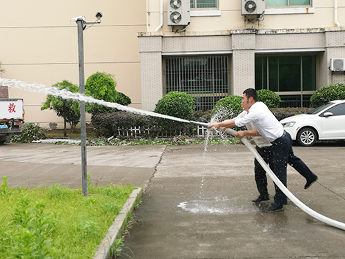 圖為消防水帶連接滅火演示現場 通過此次活動,全體員工進一步增強了員工消防安全意識,掌握了消防設備的使用,提高了全體員工消防安全知識與應變能力。 袁莉