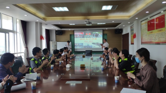 圖為消防安全知識培訓現場 培訓現場,來自六進消防的俞教官結合近年來發生的典型火災案例,將消防知識與工作生活緊密聯系起來,深入淺出地向大家講解了消防知識、火災發生原因、如何滅火及逃生技能等基本常識。俞教官提醒大家在火災逃生的過程中必須牢記要用濕毛巾捂住鼻子,防煙熏,還要避開火勢,果斷迅速逃離火場。