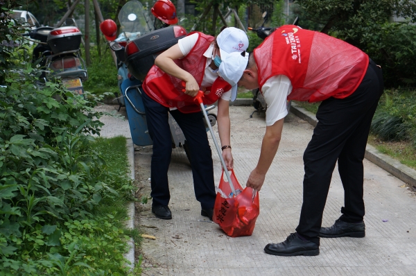 下午2時,該所一行6人在所長王小勇的帶領下抵達九峰社區(qū),在社區(qū)負責人的介紹中了解了社區(qū)的基本情況,并開展環(huán)境衛(wèi)生清理工作。志愿者們身著志愿紅背心,一手拿垃圾夾一手提垃圾袋,在社區(qū)道路、綠化帶里認真撿拾垃圾和煙頭。社區(qū)工作人員與志愿者們親切攀談,天氣雖然悶熱,但大家的熱情絲毫不減。活動結束時,雙方探討了結對共建聯(lián)絡機制,以確保共建活動常態(tài)化開展。