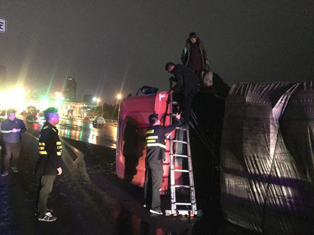 1月19日晚,一輛半掛車在溫嶺西收費站下高速時,因故在內廣場側翻。溫嶺西收費所、施救中心、高速交警、維養中心人員協同作戰,將側翻車輛吊起,有效降低了事故對收費站通行造成的影響。