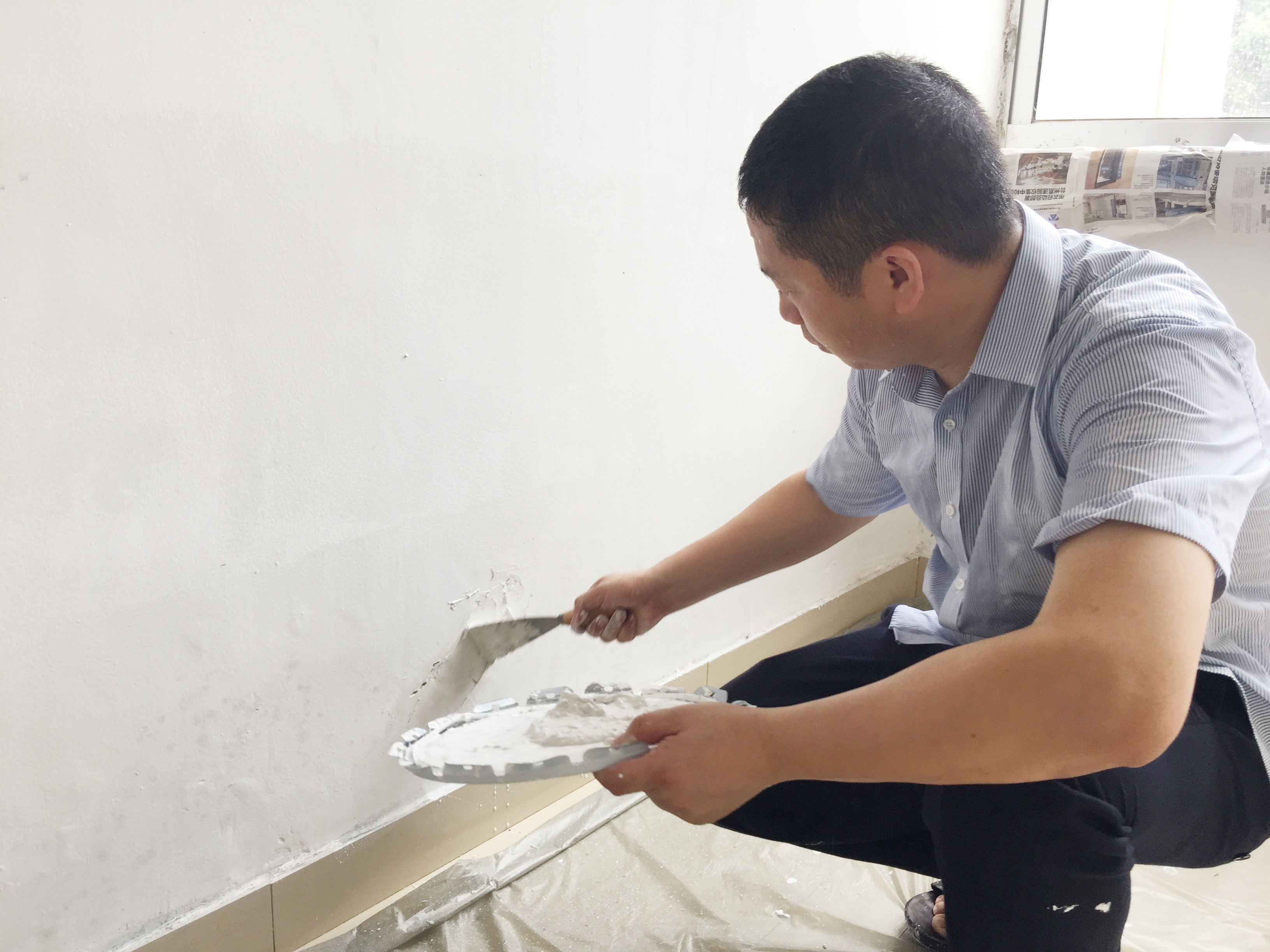 圖為“粉刷匠”粉刷現(xiàn)場(chǎng) 現(xiàn)場(chǎng),工具備齊后,大家捋起袖子開(kāi)始動(dòng)工。家里正在裝修的林通,有著豐富的粉刷經(jīng)驗(yàn),指導(dǎo)大家如何將墻體粉刷得平整又美觀。分工明確后,有的拿起粉刷棒,有的攪拌涂料,有的鋪墊報(bào)紙及塑料紙,有的清理刷墻后殘留在地面的垃圾。整個(gè)勞動(dòng)過(guò)程中,各個(gè)動(dòng)作麻利,干勁十足。粉刷是個(gè)技術(shù)活,更是個(gè)力氣活,只見(jiàn)浸滿涂料的刷子在墻上揮舞著,個(gè)個(gè)汗如雨下,卻都顧不得休息,在大家的齊心協(xié)力下,原本一片灰不溜湫的墻壁變得雪白光潔。 這次義務(wù)勞動(dòng),不僅美化了站所環(huán)境,營(yíng)造出廉潔的工作氛圍,增強(qiáng)了員工的凝聚力和向心力,更增加了全體員工對(duì)公司的一份熱愛(ài)。 林玲