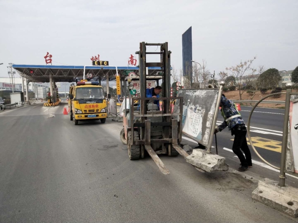 零費用清除沉重的廣告式隔離帶 “副站匝道外的廣告式隔離帶能不能幫忙清除下?” 在接到臺州南收費所的“求助”電話后,施救中心負責人馬上發(fā)動人員,迅速聯(lián)系了外協(xié)單位-----臺州市路橋通遠車輛施救有限公司,開動鏟車奔赴現(xiàn)場。 據(jù)悉,臺州南副站匝道廣告式隔離帶比較長,而且有損壞,不美觀而影響站所形象,需要全部更換成水馬。但是其底部的水泥墩非常沉重,人力不能搬動,所以該所希望施救中心幫忙清除這些廢舊物。