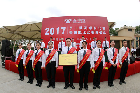 “立正、向后轉(zhuǎn)、齊步走、正步走……”10月19日下午,臺(tái)州收費(fèi)所管理房廣場(chǎng)上,伴隨著一聲聲嘹亮的口號(hào),傳來一陣陣整齊有力的步伐聲。6支收費(fèi)所、隧道所代表隊(duì),正在場(chǎng)上進(jìn)行緊張的隊(duì)列比賽。最后經(jīng)過激烈角逐,溫嶺西收費(fèi)所代表隊(duì)獲得了隊(duì)列項(xiàng)目的第一名。隨后,集團(tuán)舉行了以“煉精本領(lǐng)保暢通、同心共慶十九大”為主題的員工技能比武總結(jié)表彰儀式,對(duì)在技能比武獲獎(jiǎng)的員工和集體進(jìn)行了隆重表彰!