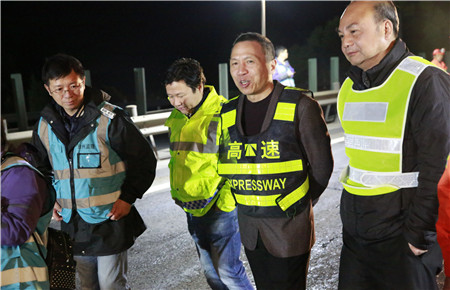 凌晨一點,張建平向工作人員表示了感謝,并叮囑他們一定要注意安全防護(hù)和做好保暖工作。此前,張建平還走訪了施救中心、維養(yǎng)中心、臺州收費所、黃土嶺隧道所等一線單位,他對站所整潔度、人員到崗情況表示了肯定。