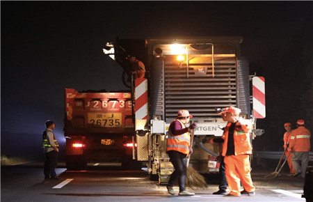 確定日期時間。施工前夕工程部負責人反復與交警、路政等部門溝通協(xié)調(diào),渠道暢通,最終達成一致意見,為盡量避免給公眾出行帶來影響,施工基本采用夜間斷流封道方式進行。施工過程中與高速交警、路政配合默契,封道都在規(guī)定時間內(nèi)開始結(jié)束,盡所能減輕施工對高速營運影響,保證路段通行能力。