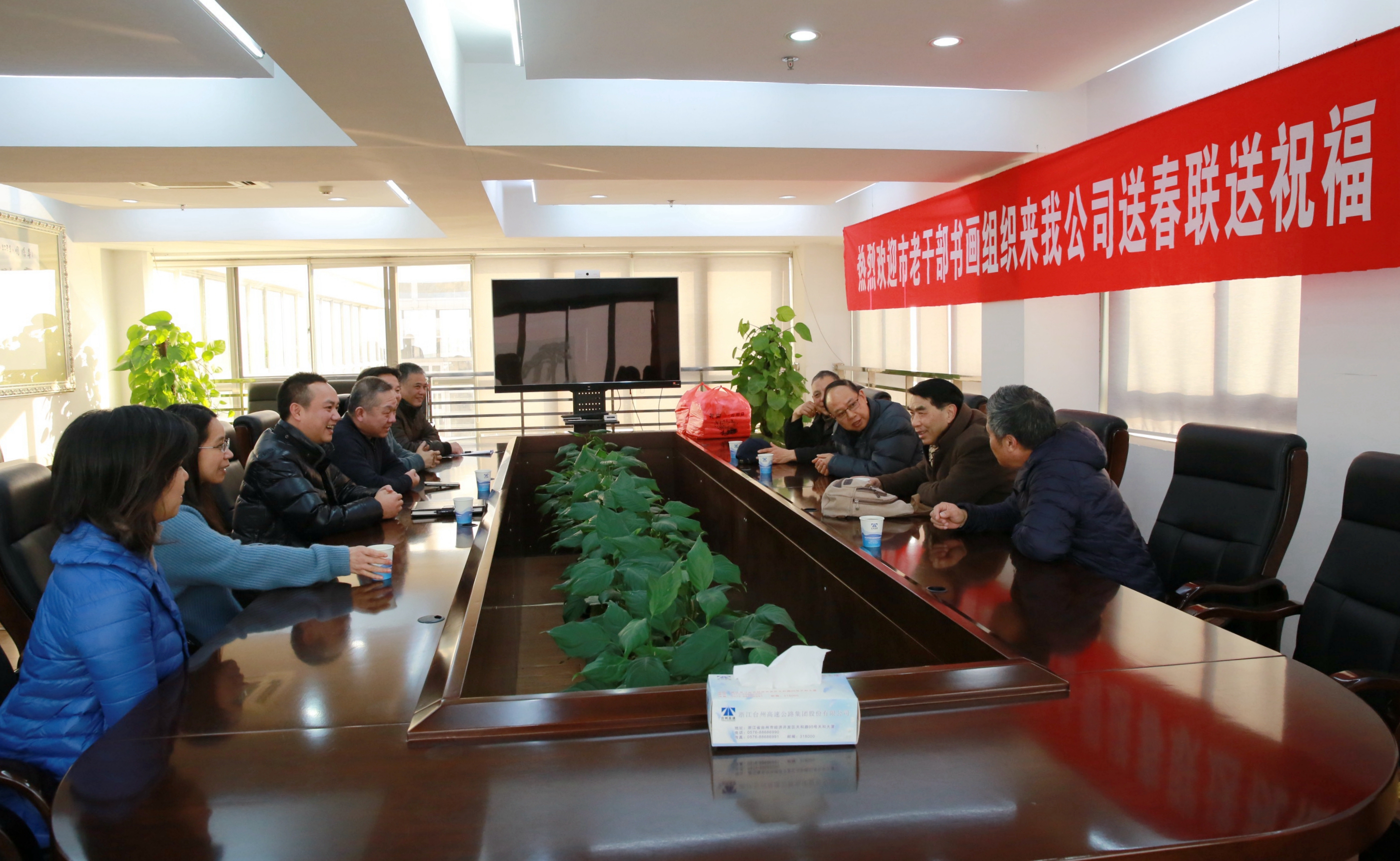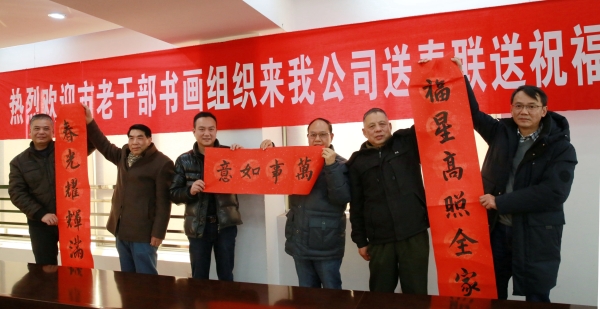1月17日下午,市老年書畫研究會會長楊通河,市直機關老干部書畫協會領導施巨日、陳孔梅一行來公司送春聯送祝福,感謝公司對研究會的支持和關愛,祝愿公司在新的一年里紅紅火火,萬事如意,經營發展越來越好。