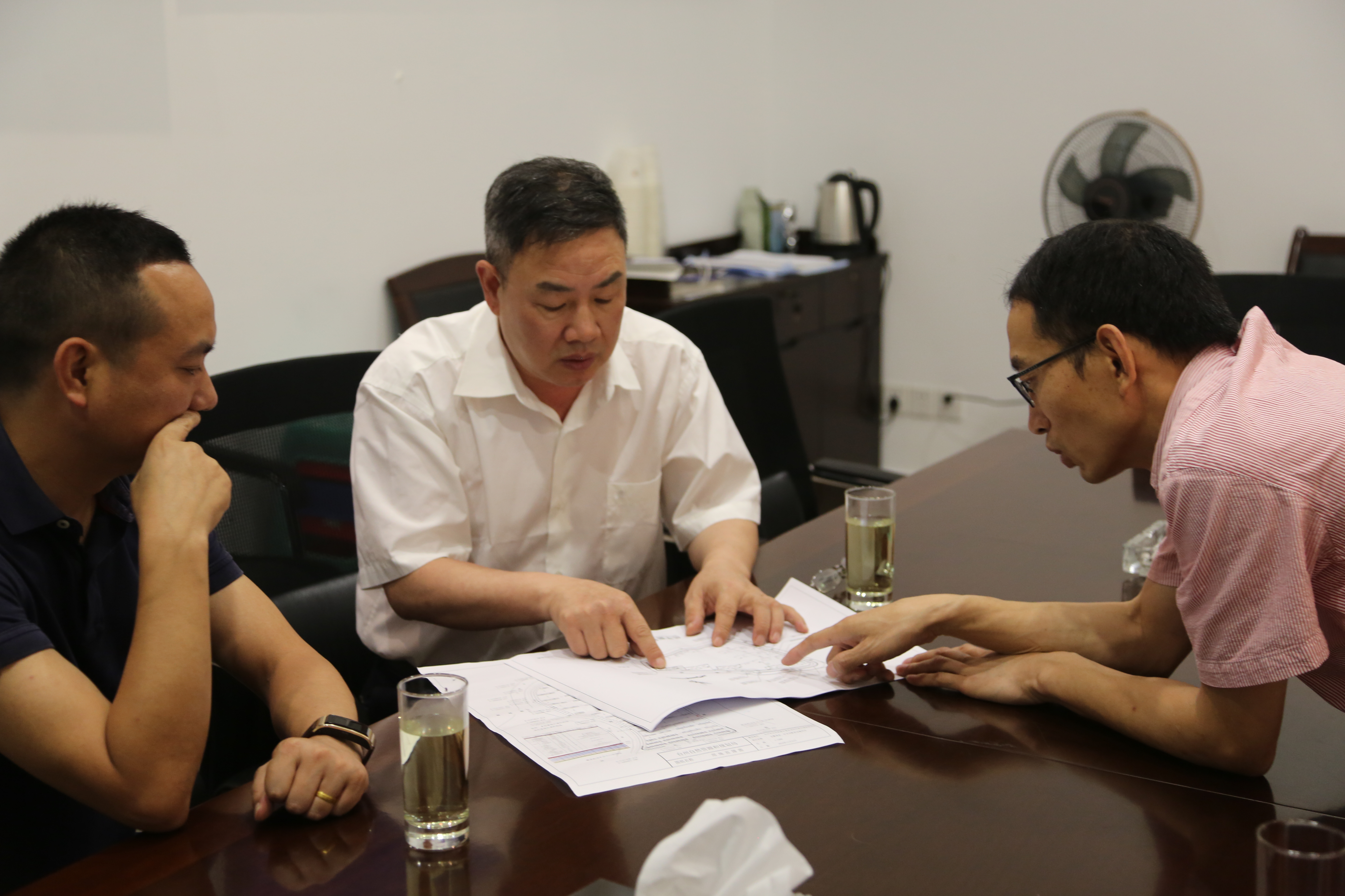 圖為集團領導陳文波聽取房產項目介紹 每到一個工地,陳文波都向施工負責人了解工程概況、施工進展情況及安全質量管理等情況。陳文波特地叮囑項目負責人、施工方和監理方管理人員,7、8月份是臺州的臺風季,高溫多雨,也是安全生產事故的易發期和多發期,各相關單位要嚴格落實安全生產主體責任,強化生產安全管理。要加強安全管理措施的建立和完善,按規定做好專職安全管理人員的配備,落實各方責任。各方要從思想上、行動上高度重視安全生產工作,認真查擺,消除一切可能存在的安全隱患,堅決杜絕各類事故的發生。