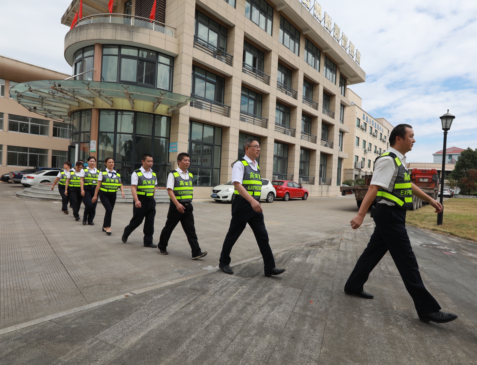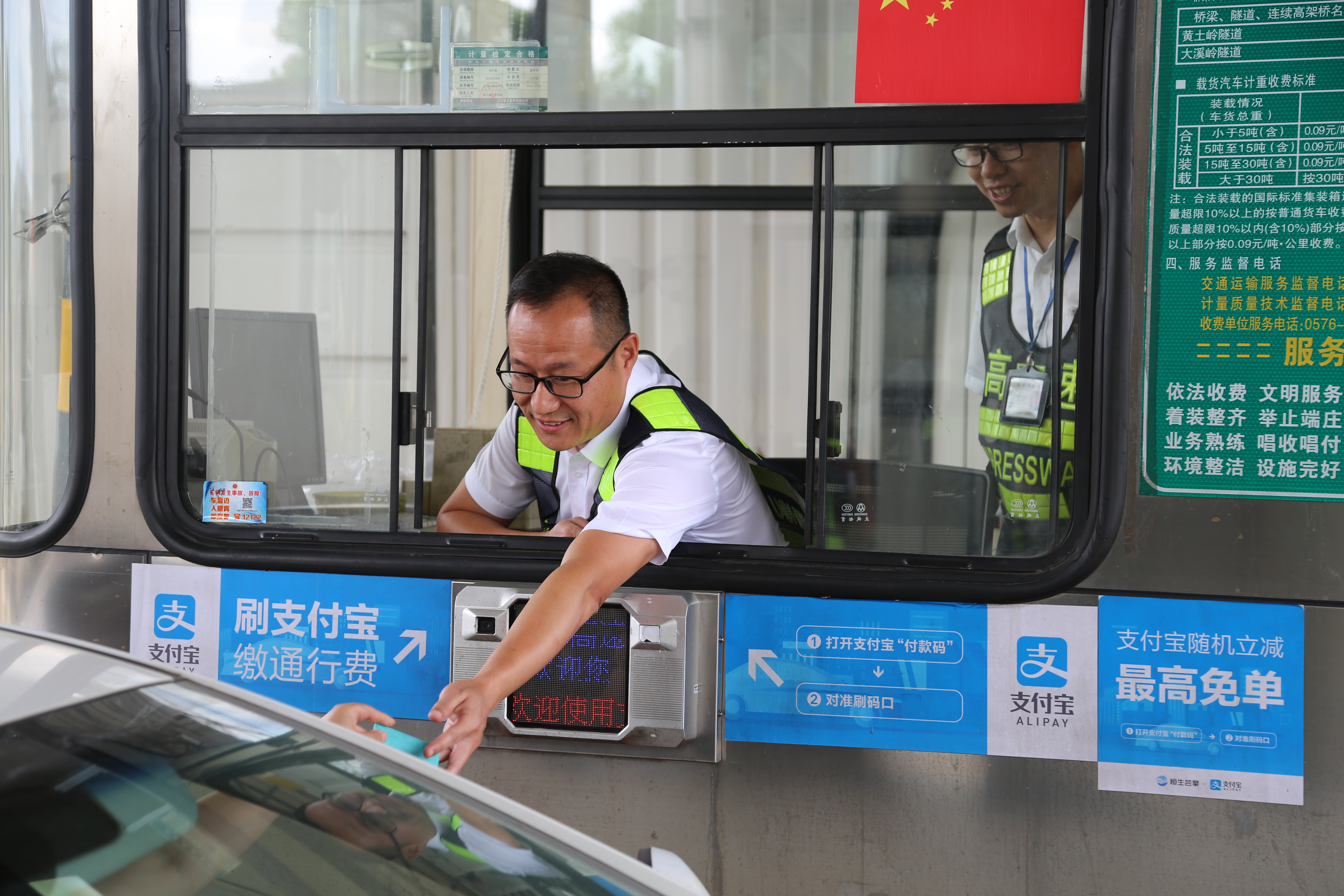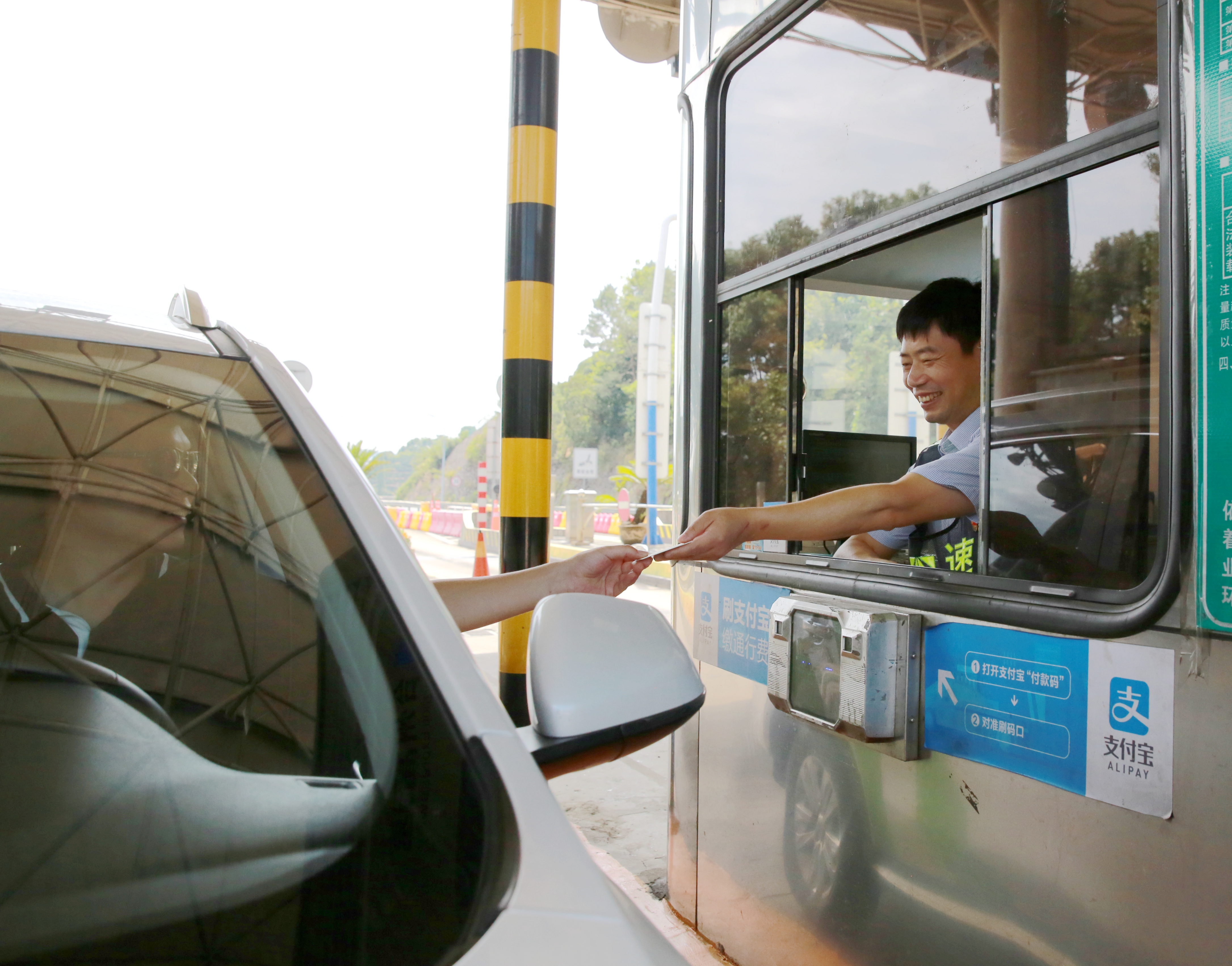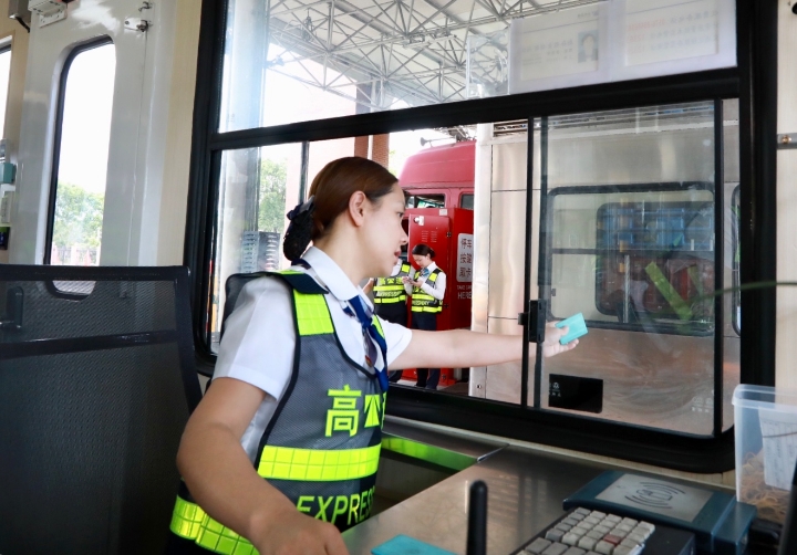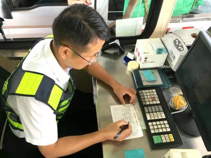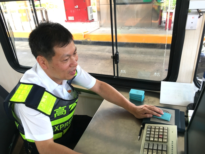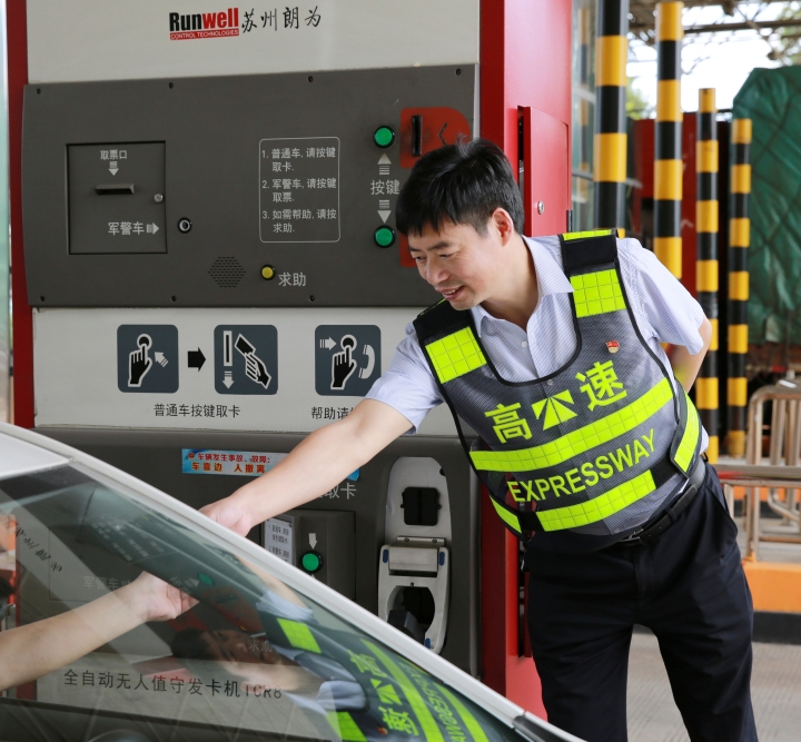 而在對(duì)面發(fā)卡的安全總監(jiān)項(xiàng)同富正襟危坐,等待著車子的駛?cè)耄?/span>“記住動(dòng)作就忘記微笑,笑起來又忘記要說什么......真有點(diǎn)手忙腳亂的,做好收費(fèi)員,不容易。”