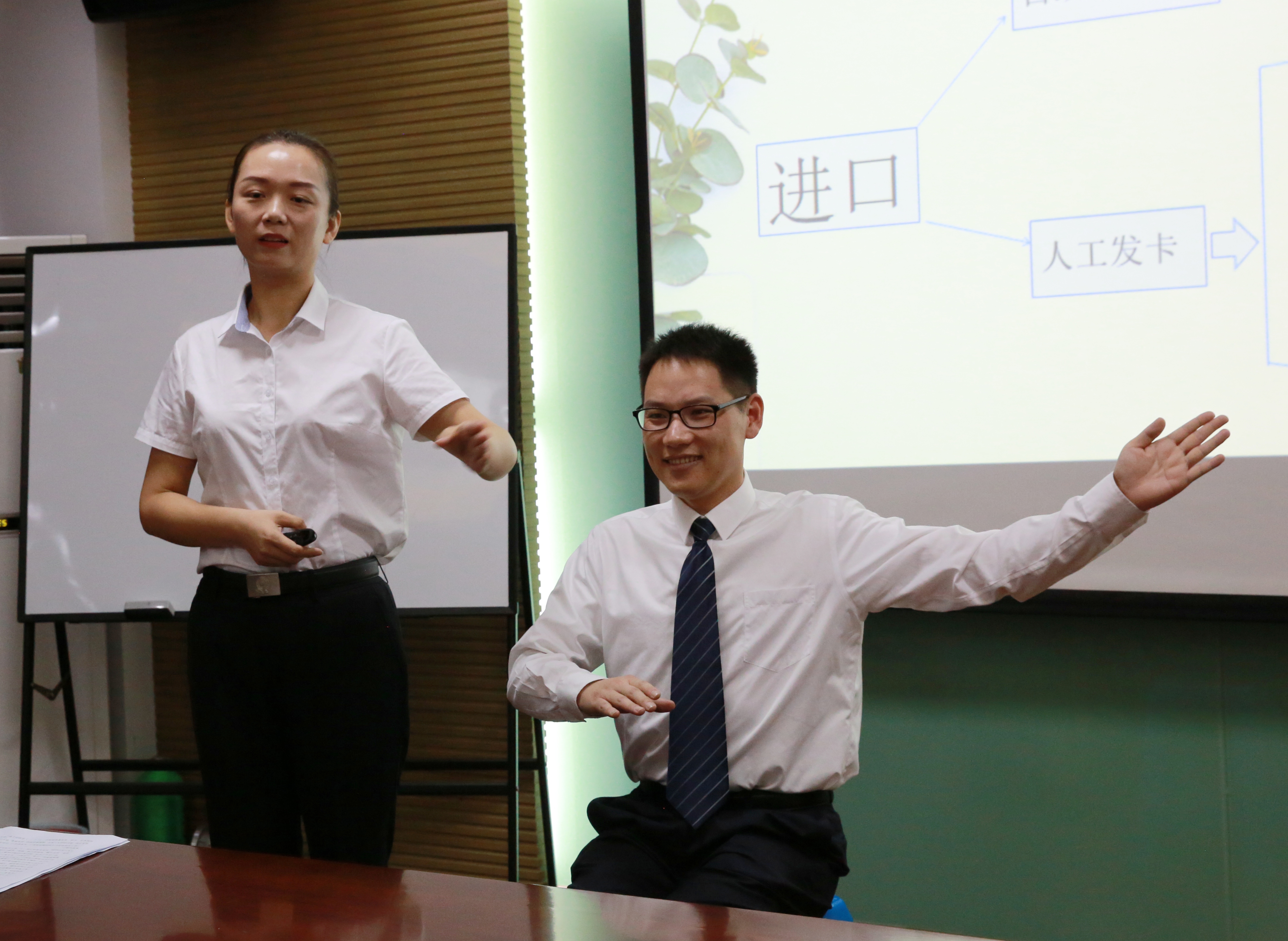 隨后,臨海南收費(fèi)所文明服務(wù)培訓(xùn)師徐蘇蘇通過PPT,以輕松風(fēng)趣的講課風(fēng)格,給班子領(lǐng)導(dǎo)們上了一堂儀容儀表講解、操作流程演示、文明服務(wù)動(dòng)作以及心理建設(shè)的課,并通過員工真人示范文明服務(wù)中坐姿、眼神、聲音等練習(xí),令在場(chǎng)的受訓(xùn)者耳目一新。