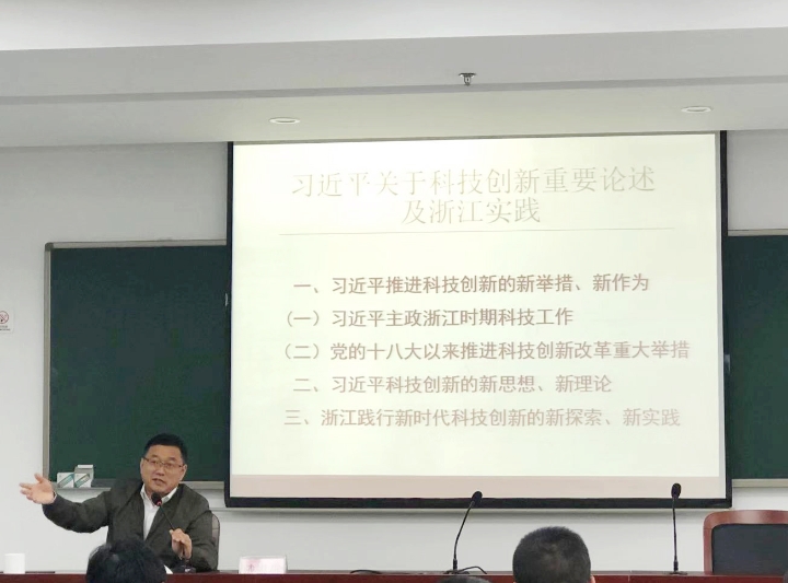 圖為浙江省科技廳教育培訓中心副主任戴銀燕以《習近平科技創新及浙江實踐》為題授課