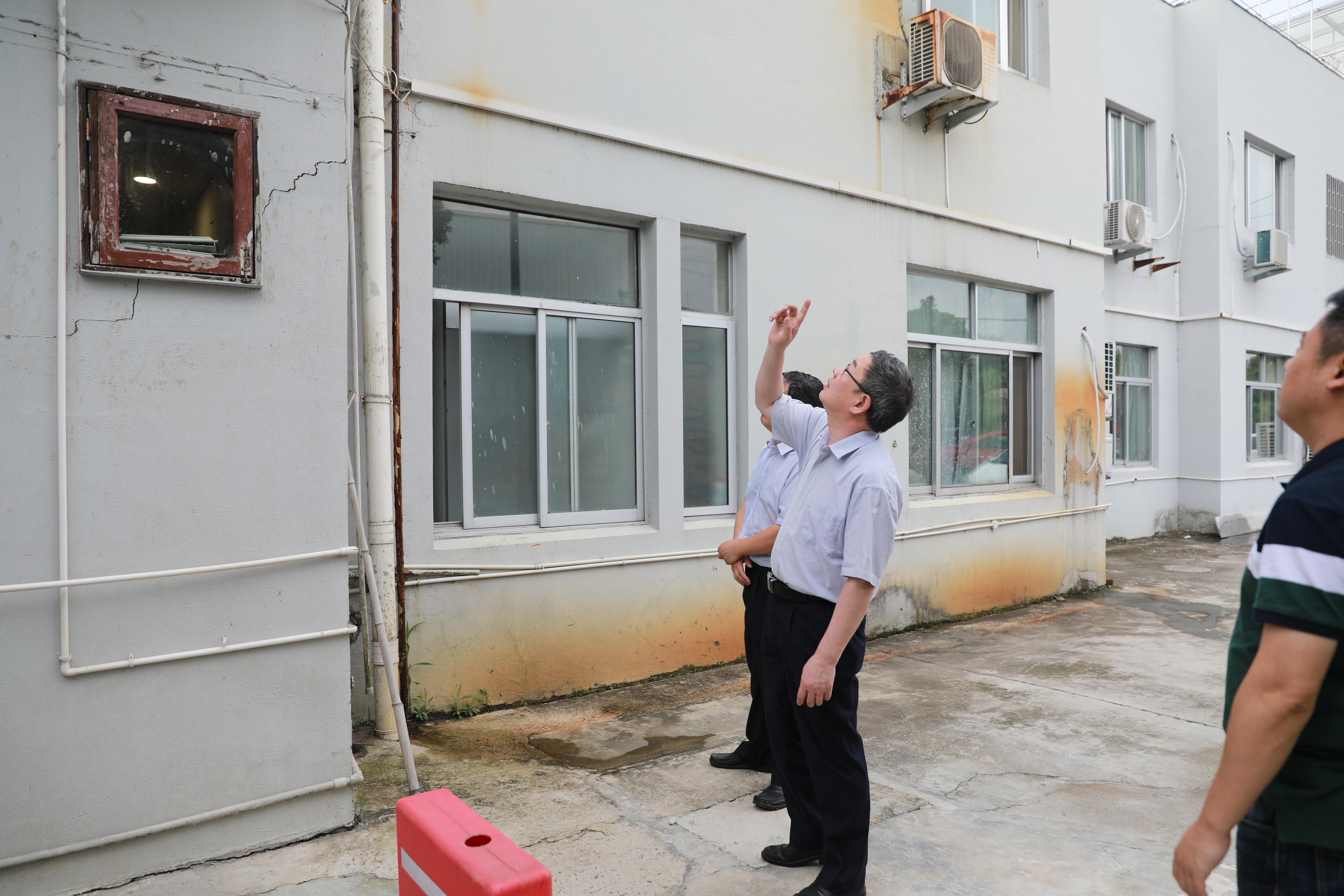 圖為陳文波查看墻體開裂情況 安全無小事。在溫嶺西收費(fèi)所食堂的儲(chǔ)藏室里,陳文波仔細(xì)查看墻體瓷磚開裂情況,前期聽到所里反映食堂儲(chǔ)藏室的瓷磚剝落現(xiàn)象,他一直記掛著這件事,今天特地帶領(lǐng)安保部相關(guān)人員來到現(xiàn)場(chǎng)踏勘,了解實(shí)際情況。他叮囑旁邊的安保部經(jīng)理周超:“小問題也要引起高度重視,要善于發(fā)現(xiàn)苗頭性的問題,針對(duì)墻體瓷磚開裂的原因要盡快得出專業(yè)的分析研判,需要維修的立即制定方案著手實(shí)施,千萬要保障安全。”隨后,他轉(zhuǎn)身對(duì)溫嶺西收費(fèi)所所長(zhǎng)楊瑩瑩交待道:“在此之前,要落實(shí)好這一區(qū)域的隔斷措施,寧可事先多做一點(diǎn)預(yù)防,不要事后亡羊補(bǔ)牢,安全問題麻痹大意不得。”