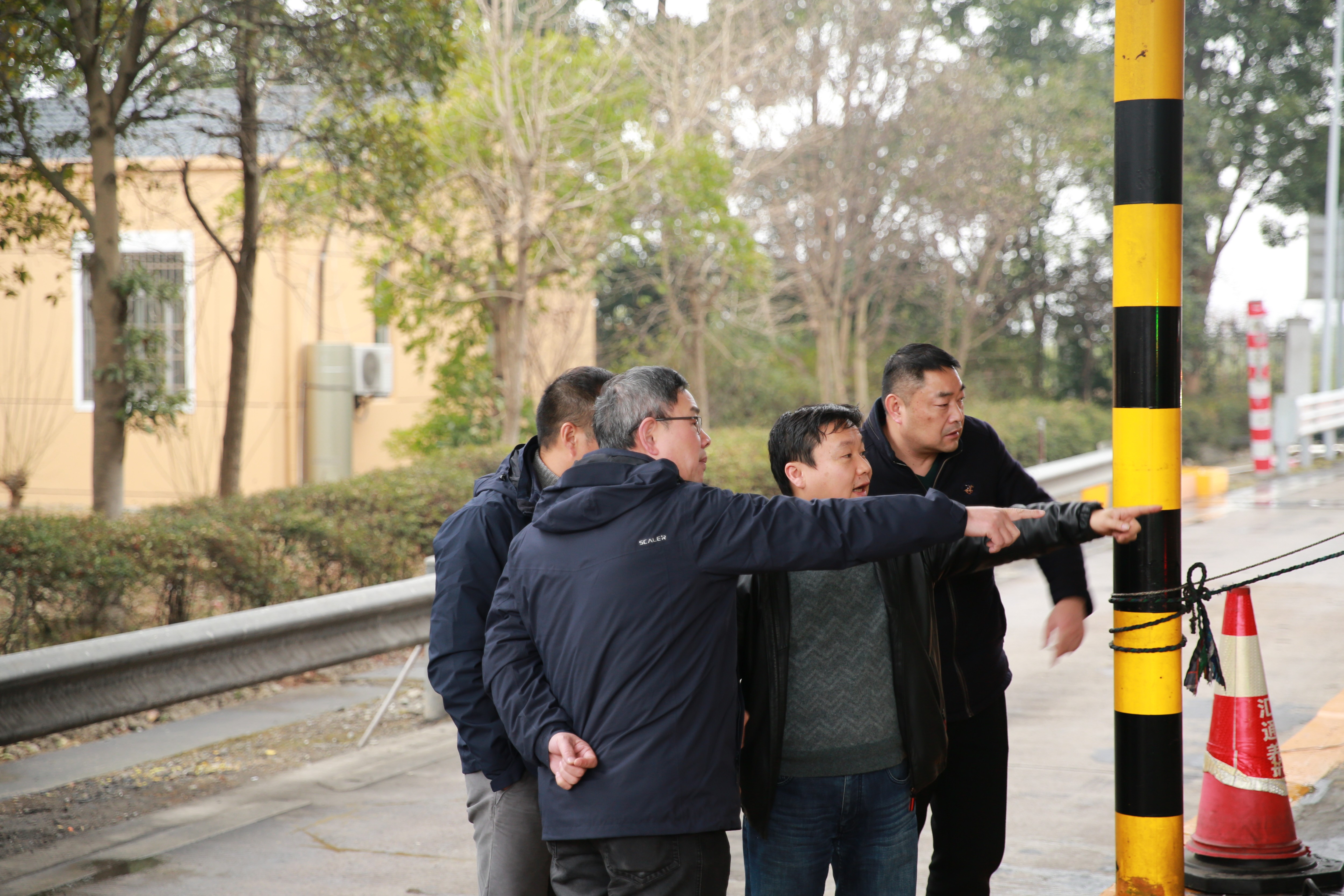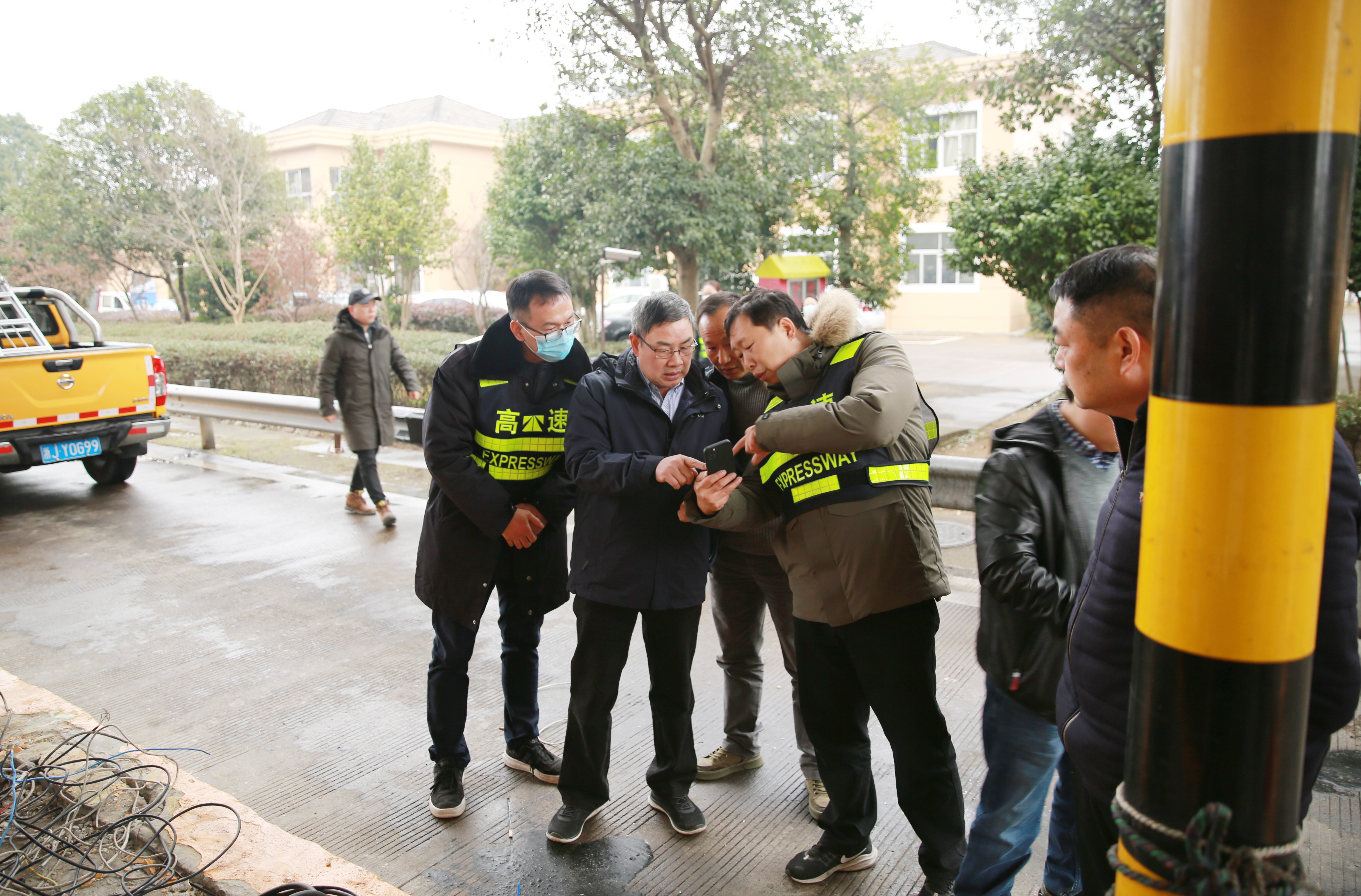 1月20日下午,臺州高速集團(tuán)黨委書記、董事長、總經(jīng)理陳文波趕往臨海南收費(fèi)所,現(xiàn)場指導(dǎo)1月19日深夜大貨車撞倒收費(fèi)崗?fù)さ暮罄m(xù)維修工作。集團(tuán)副總經(jīng)理章海峰,工程養(yǎng)護(hù)部、安保部負(fù)責(zé)人陪同。 事發(fā)現(xiàn)場,各種破損之物于昨晚深夜就已被清理干凈,被撞的1號崗?fù)の恢弥皇O侣懵兜母鞣N電線,以及被截?cái)嗟姆雷仓j愇牟ㄟ叢榭船F(xiàn)場情況,邊同維養(yǎng)技術(shù)人員就如何加強(qiáng)收費(fèi)崗?fù)ぐ踩禂?shù)展開商討,并提出有關(guān)建議。