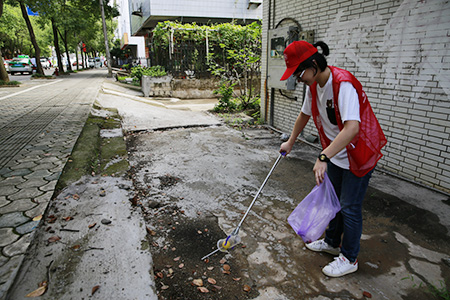 8:30,臺(tái)州高速志愿者小分隊(duì)按時(shí)到達(dá)聯(lián)系點(diǎn)位赤山路。盡管當(dāng)天天氣變化莫測(cè),時(shí)而烈日高懸、時(shí)而暴雨狂風(fēng),但他們?nèi)匀桓蓜攀恪⒍分靖甙海纸M有序地沿著馬路撿拾灑落在路面上、草叢里的煙蒂、果殼等垃圾,用實(shí)際行動(dòng)帶動(dòng)和感染身邊的行人,引導(dǎo)大家自覺加入到文明創(chuàng)建隊(duì)伍中來,為我市創(chuàng)建工作添磚加瓦。 毛宇航