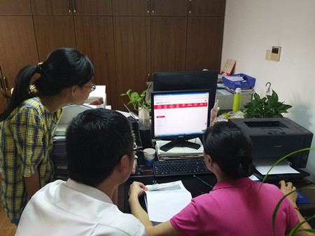 圖為經(jīng)辦人員在銀行業(yè)務(wù)人員指導(dǎo)下進(jìn)行實(shí)際操作