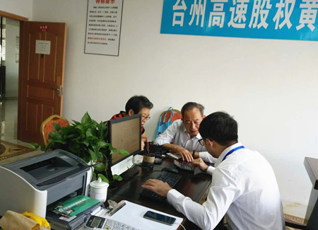 圖為黃巖收購點工作人員服務(wù)股東現(xiàn)場 “那時候沒錢,可咱領(lǐng)導(dǎo)干部要帶頭,這錢還是向自家兄弟借的。”這是原市府領(lǐng)導(dǎo)夫人的原話。 “科室里沒人認領(lǐng),我想著咱也為臺州建設(shè)作點貢獻,就當(dāng)捐款吧!沒想到后來真的有分紅,現(xiàn)在還有這么高的收購價,值了!”這是大多數(shù)股東的原話。