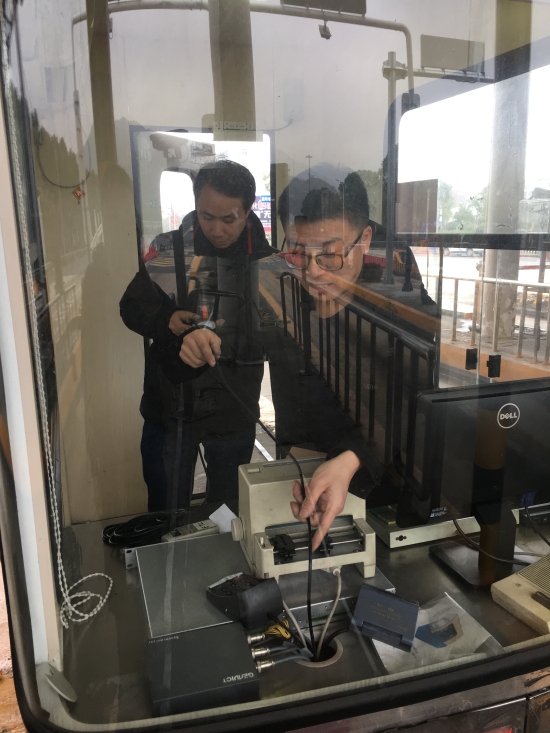 圖為工作人員在安裝手持OBU讀寫器 在得知這一情況后,工程部機電設備維養中心一開始想到了通過加大天線功率的方法來提高OBU讀寫成功率,不但收效甚微還造成了鄰道干擾,并將同信道的相鄰車道車輛OBU信息也一同讀取了,造成了數據混亂,增加了收費人員的工作量。 正在一籌莫展之際,中心負責人通過全省收費系統互助群了解到省內部分路段針對這一狀況啟用了手持式OBU讀寫器,在反響不錯后,中心人員立刻聯系了設備廠家訂購郵寄。 經過維護人員一天的安裝調試,手持式OBU讀寫器已成功接入到每個車道崗亭。這種新型手持讀寫器具有DSRC專用短程通信接口,可以識別車輛上OBU設備內特有的編碼,判別車型,寫入信息,計算通行費用,并自動從車輛用戶的專用帳戶中扣除通行費。當現有車道天線交易失敗時,收費人員便可用它對車輛OBU進行重新搜索并自動進行交易。 手持式OBU讀寫器的投入使用,彌補了現有車道OBU讀寫器的缺陷與不足,有效減少車輛擁堵現象的發生,便于收費人員現場靈活操作,提高收費站的通行效率。 項寅曉