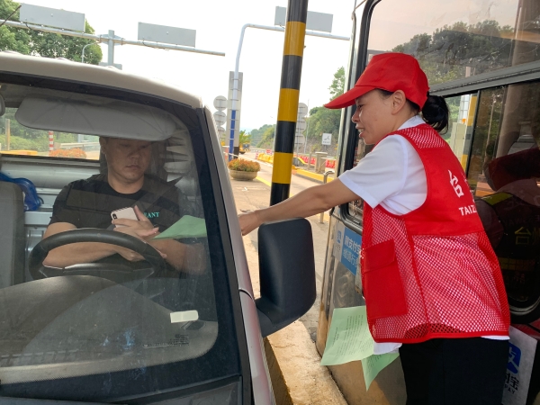 9月10日上午,臨海南收費所志愿者身穿耀眼的紅馬甲,在車道出入口向過往司乘人員發放“弘揚傳統美德,制止餐飲浪費”倡議書,號召廣大司機從自己做起、從現在做起、從點滴做起,自覺抵制餐飲浪費,積極號召身邊的人傳承勤儉節約的良好家風,向全社會營造“浪費可恥、節約為榮”的深厚氛圍。