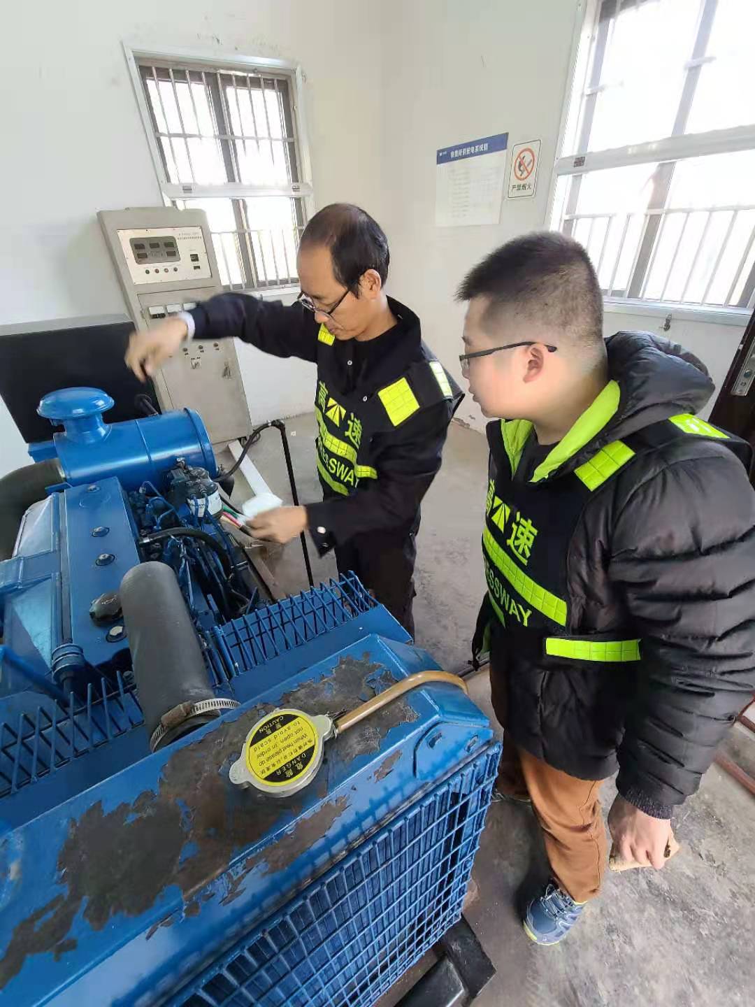 (圖為工作人員在對發(fā)電機巡檢)