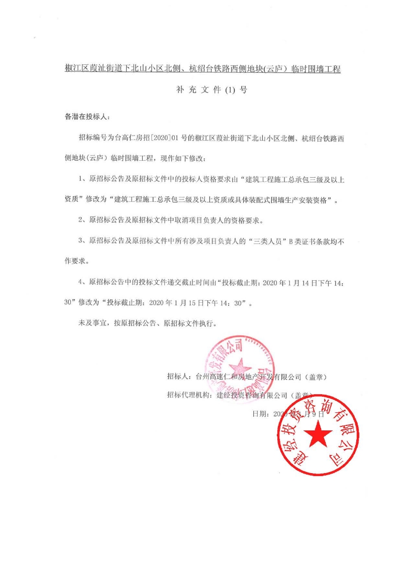 椒江區(qū)葭沚街道下北山小區(qū)北側(cè)、杭紹臺鐵路西側(cè)地塊(云廬)臨時圍墻工程補充文件