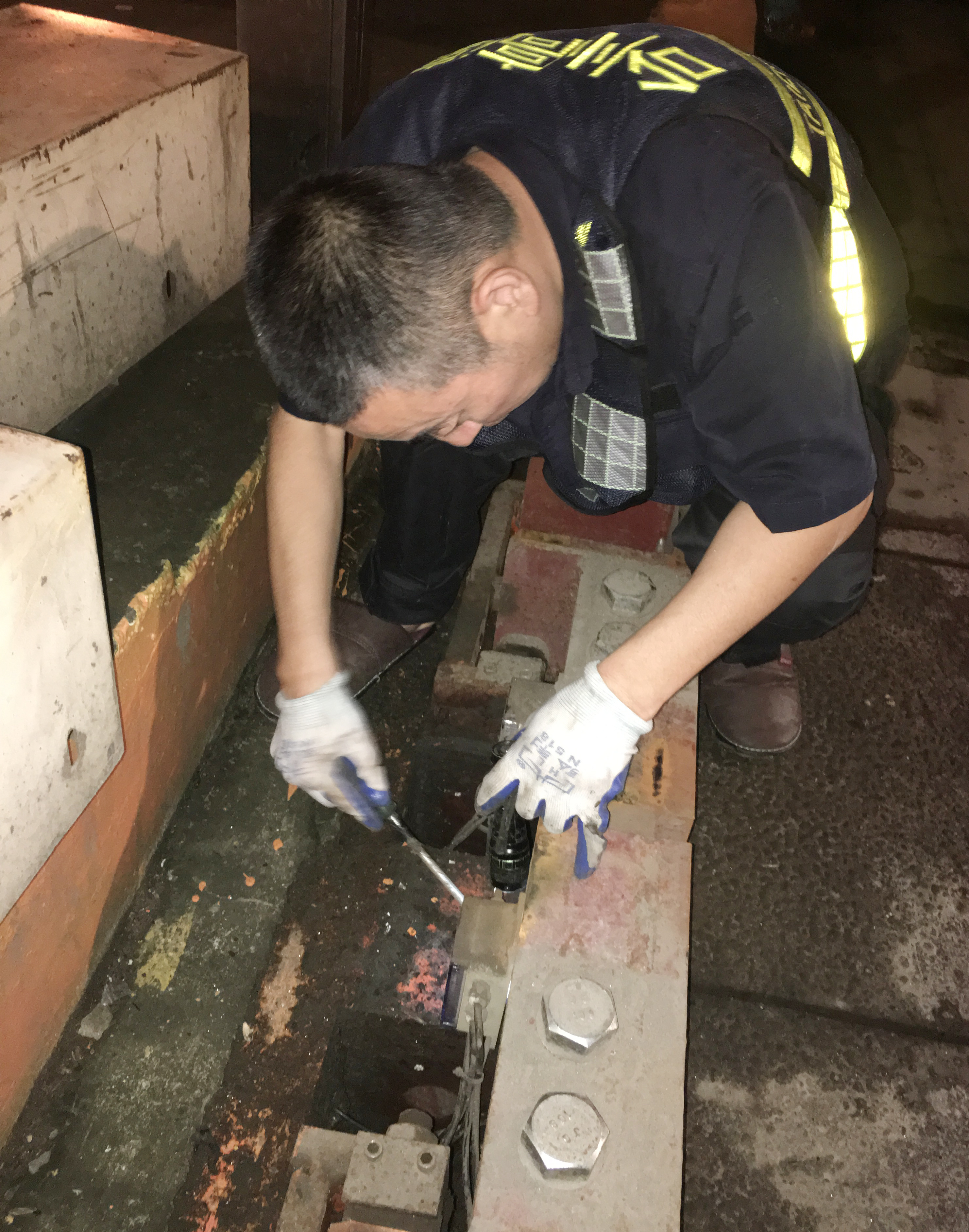 圖為張鵬在搶修計重稱臺