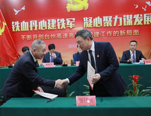 會上,臺州收費所黨支部、臺州南收費所黨支部、大溪嶺隧道所黨支部上臺作黨建工作經(jīng)驗典型發(fā)言。集團領(lǐng)導(dǎo)陳文波與各支部書記簽訂《2019年度黨建工作責(zé)任書》、《黨風(fēng)廉政建設(shè)責(zé)任書》,各中層以上干部簽訂了《廉潔履職承諾書》。