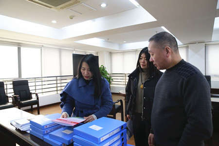 圖為檢查人員檢查黨建資料現(xiàn)場