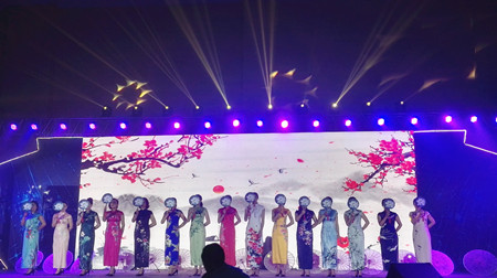 圖為旗袍秀現(xiàn)場 晚會一開場,由椒江區(qū)前所街道前所村(全國文明村)表演的鑼鼓舞《歡慶新時(shí)代》馬上將觀眾帶入到熱烈的氣氛中。隨后,各家單位選送的15個(gè)節(jié)目以小品、舞蹈等多種形式,展示學(xué)習(xí)貫徹落實(shí)十九大的成績,歌頌新時(shí)代黨領(lǐng)導(dǎo)下的新氣象。 公司員工包德福代表公司參加晚會,獨(dú)唱歌曲《天際》,其動(dòng)聽的歌聲贏得了現(xiàn)場觀眾的陣陣掌聲和喝彩。 周茂森