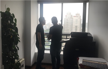 圖為檢查門窗 臺風來臨期間,市政公司要求員工手機保持暢通,盡量在公司或者家里不要外出,確保人身和財產的安全,避免不必要的傷害和損失。 徐夢燁